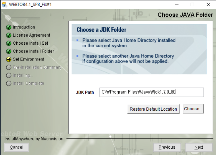 WEBTOB에도 JDK Path를 동일하게 넣어줍니다.