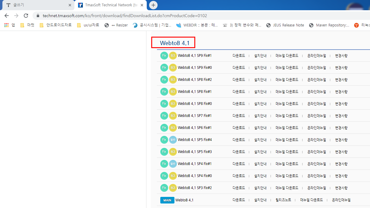 위의 사이트에서 필요한 WebtoB 버전을 다운해주세요.