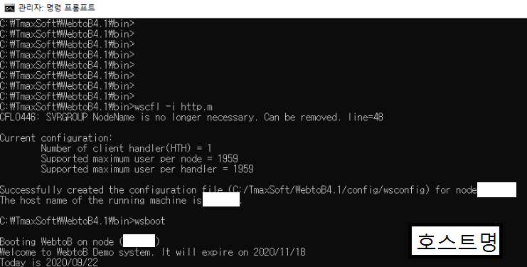 제품명 : WebtoB, Host Name은 PC의 호스트 네임과 동일해야 하니 꼭 꼭 챙겨주세요.