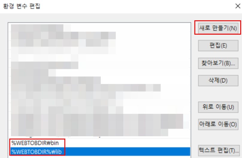 WEBTOBDIR를 선언해주고, bin / lib 까지 환경변수에 넣어줍니다.