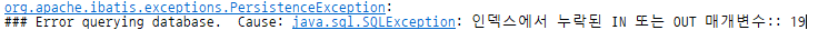 org.apache.ibatis.exceptions.PersistenceException: ### Error querying database. Cause: java.sql.SQLException: 인덱스에서 누락된 IN 또는 OUT 매개변수::
