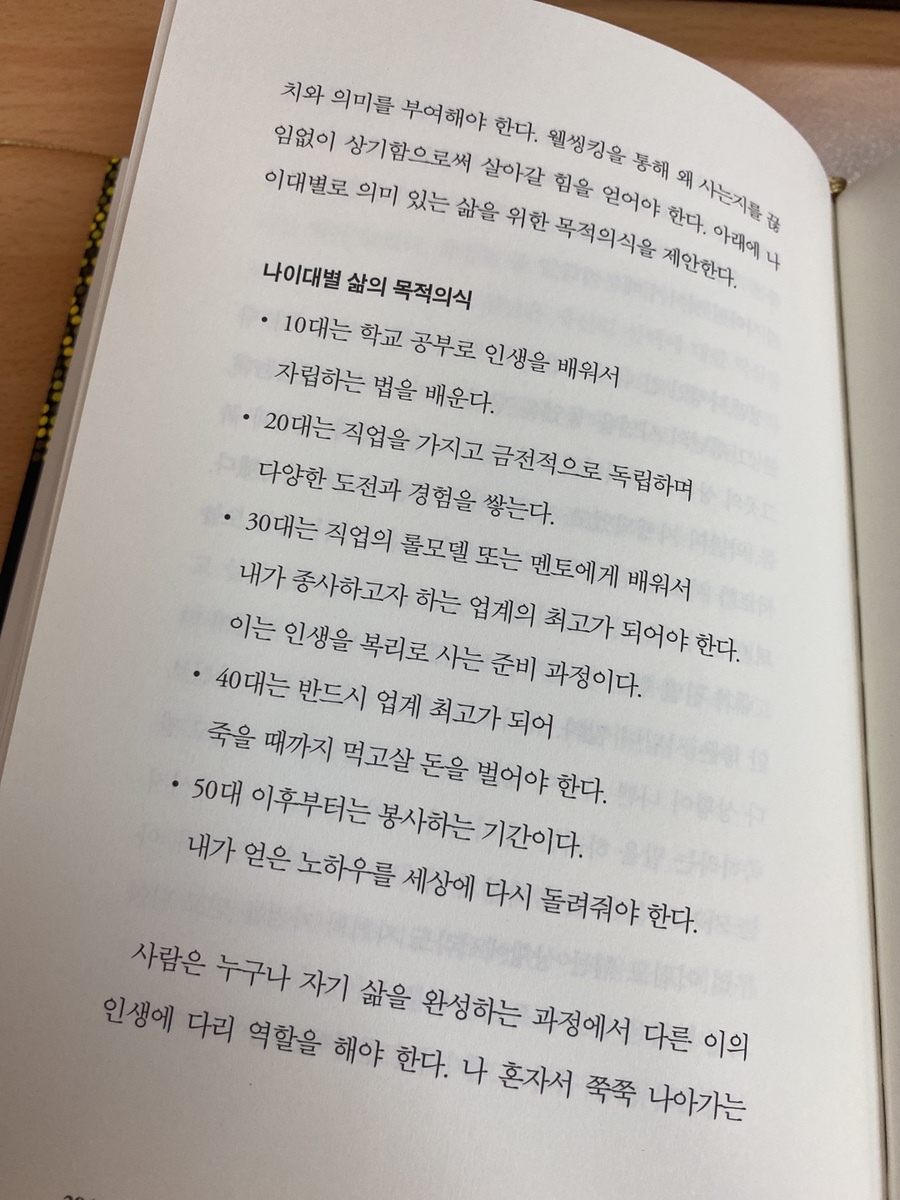 - 매일 조금씩 성장하고, 30대는 종사하고자 하는 업계의 최고가 되어야하며 40대는 죽을 때 까지 먹고 살 돈을 벌어야 한다