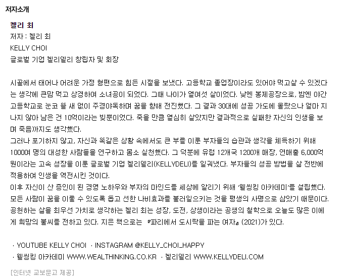 켈리최님은 이미 파리에서 도시락을 파는 여자 라는 책으로 유명했다. 얼마전 서점에서도 책이 계속해서 잘 팔리고 있더라..
