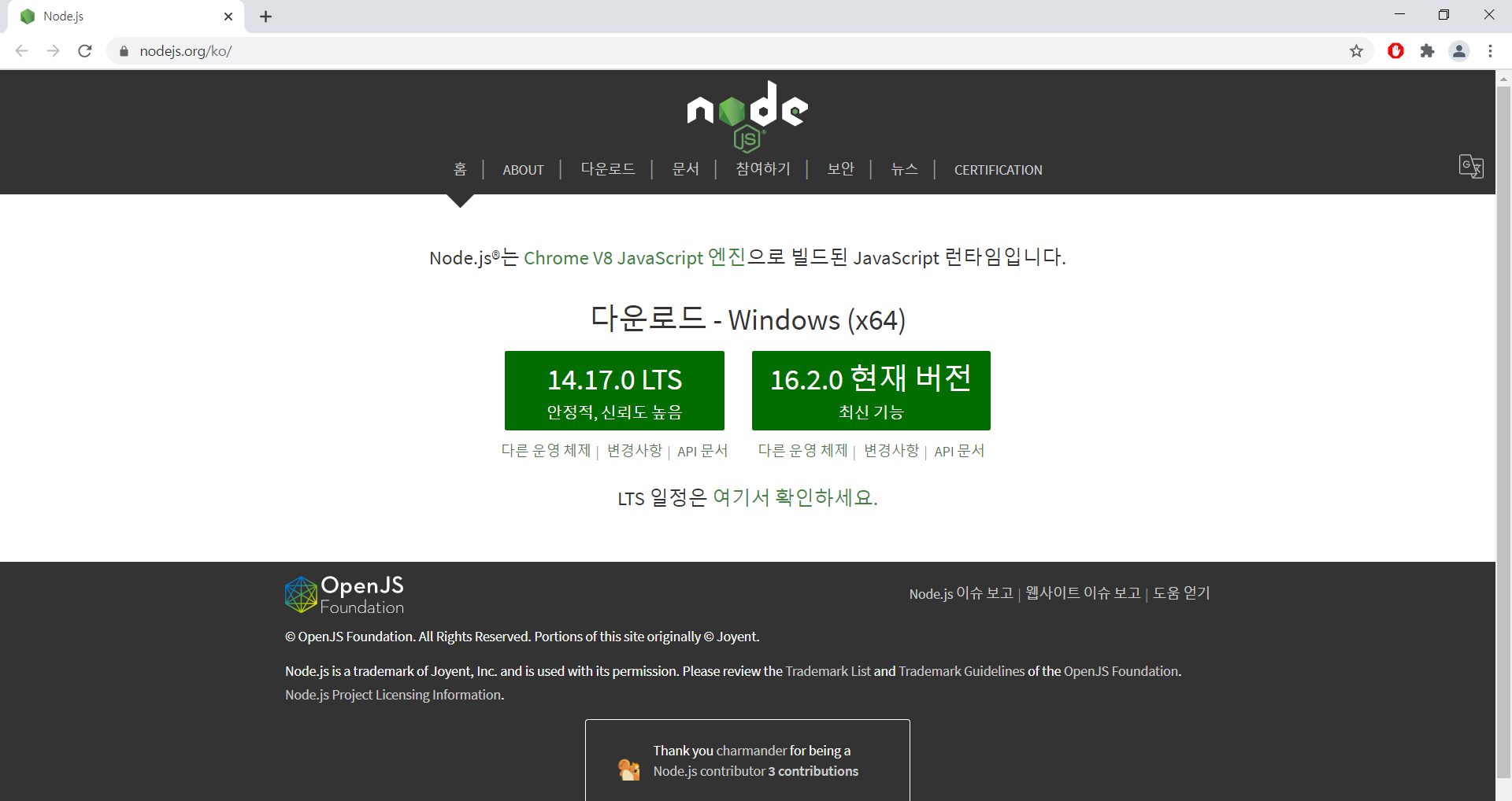 저는 안정적인 버전 14.17.0 으로 설치 했습니다.